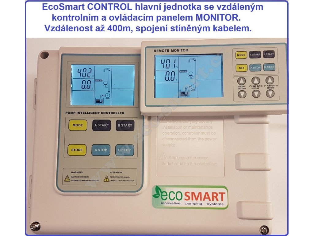 EcoSmart CONTROL PLUS 400-2 je multifunkční kontrolní jednotka pro ovládání, kontrolu a kompletní ochranu dvou čerpadel se vstupním napětím 3x400V a výkonem motorů 0,75-4,0 kW.