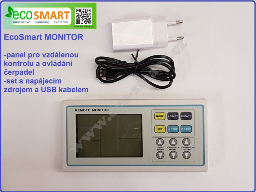 Hlavní jednotka může být doplněna o MONITOR - panel pro plnohodnotné ovládání a kontrolu čerpadla z místa vzdáleného až 500 metrů! Displej zobrazuje shodné údaje jako hlavní jednotka!